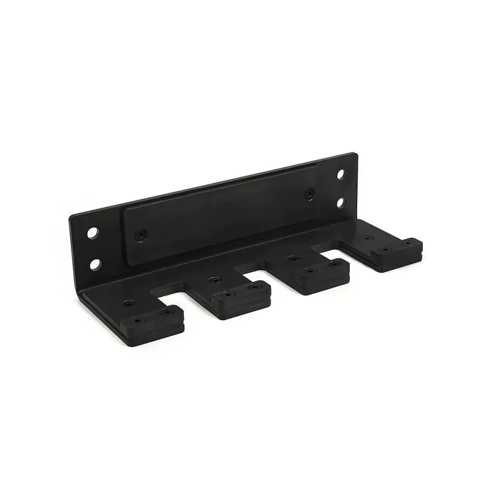 Supporto fornito con tutto il necessario per il montaggio a parete rendendola la rastrelliera adatta a qualsiasi tipo di palestra.