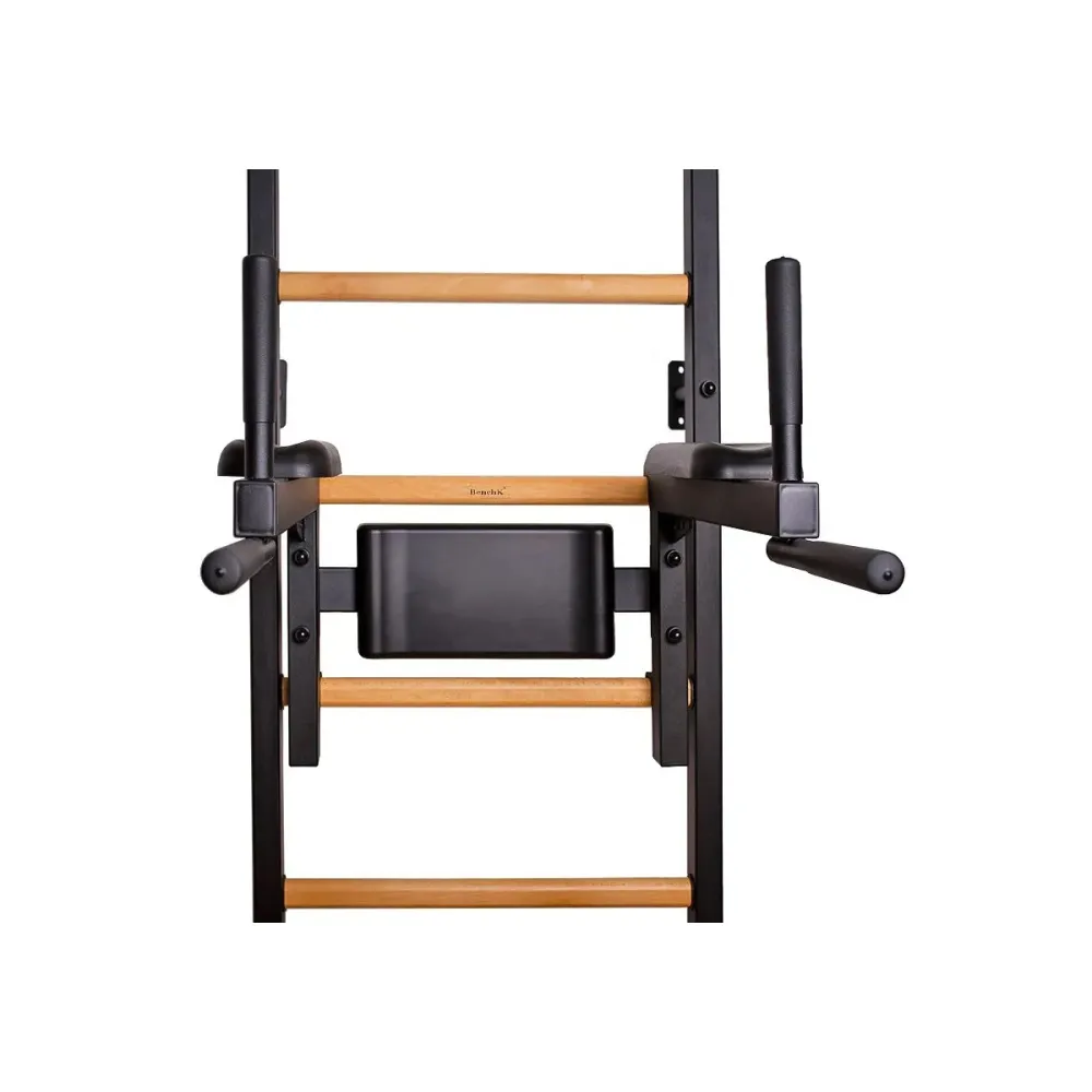 Parallele agganciabili a spalliera (solo per modelli BenchK) con appoggi per le braccia e cuscino lombare sagomati, in poliuretano stampato ad iniezione. Punti di aggancio con rivestimento interno in gomma per salvaguardare l'integrità dei pioli.