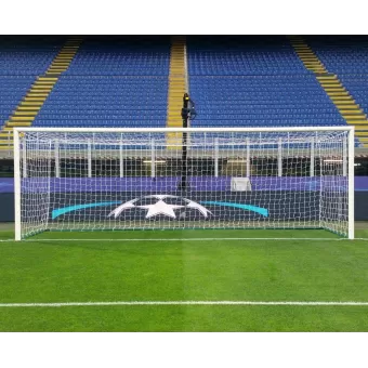 Coppia di porte da calcio professionali in alluminio, adatte a qualsiasi competizione, con reggirete a palo distanziato