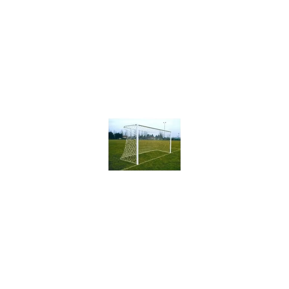 Porta calcio fissa in alluminio, pali e traversa con sezione tonda 80 mm o sezione ovale 100x120 mm.